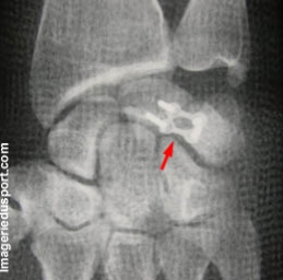 Arthrodèse luno-triquétrale dans le cadre d'une instabilité de cette articulation. Lors de l'intervention, présence associée d'une lésion du ligament scapho-lunaire, mais d'aspect stable.