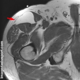 - En T2, signal intermédiaire (effacement sur séquence avec suppression de graisse)